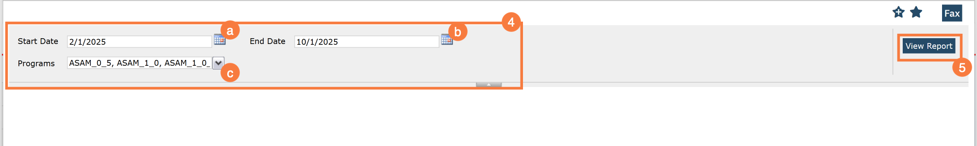 - Programs: A multiple select that allow users to specify the programs the report will pull data from.