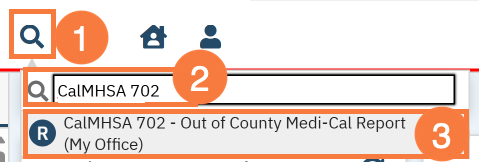 3. Select “CalMHSA 702 – Out of County Medi-Cal Report (My Office)” from the search result