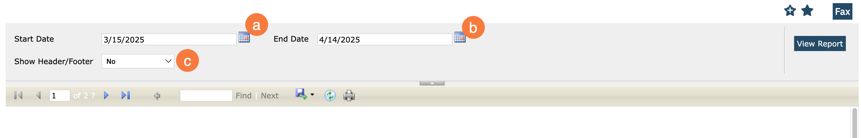 1. Start Date: A date filter where users specify the beginning of the date range they wish to view regarding service record’s Date of Service