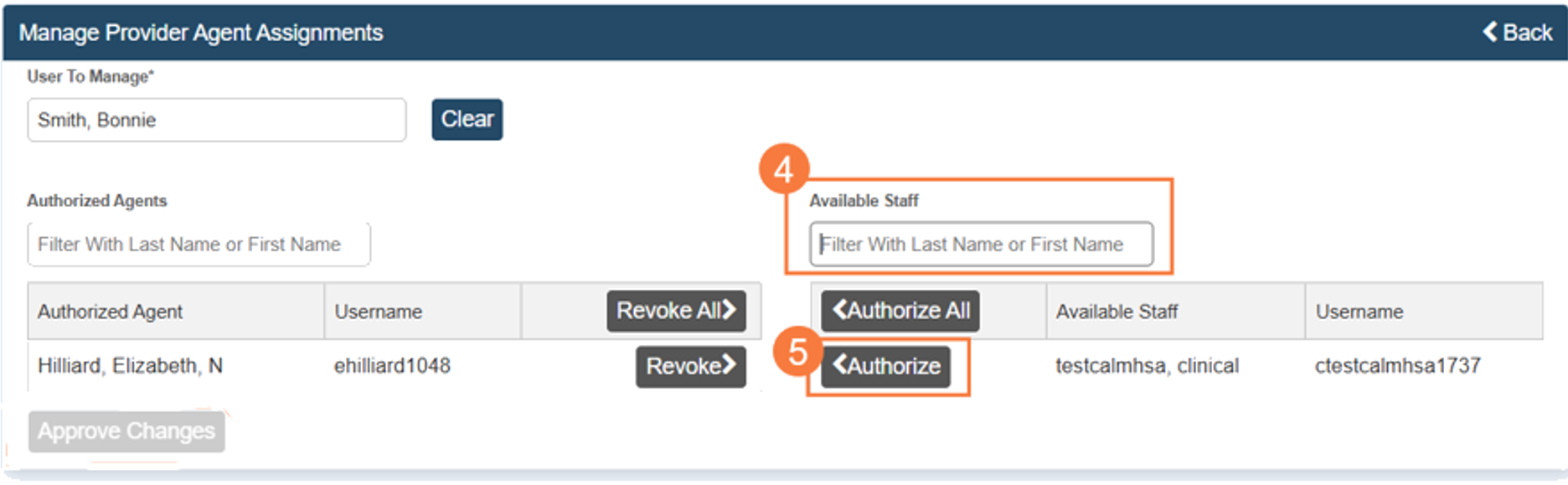The staff should now be removed from the Authorized Agents side and visible in the Available Staff side.