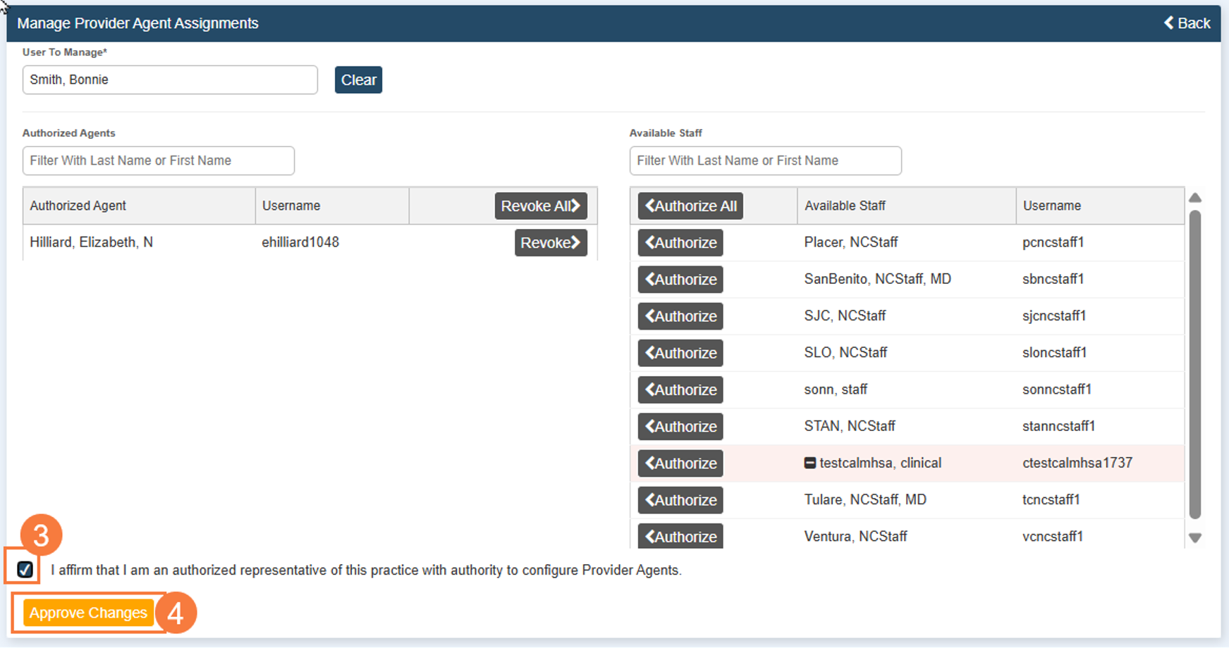 This guide will show a provider how to authorize and revoke provider agents from their own account. Only staff accounts that have been assigned the Clinical Staff role can be upgraded to Provider Agent.