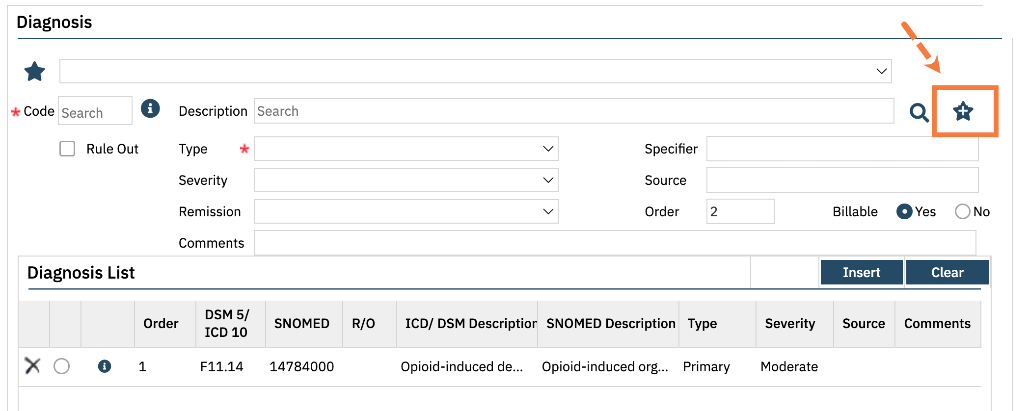 - We do recommend that you consider saving commonly used ones as favorites for future use. See: How to Save a Favorite Diagnosis
