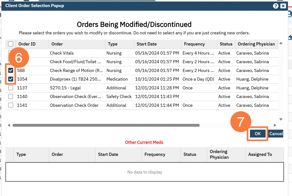 - Note: To modify an additional existing order, click the Add Additional Orders, which will cause the Client Order Selection Popup to appear, and you can repeat the above steps.