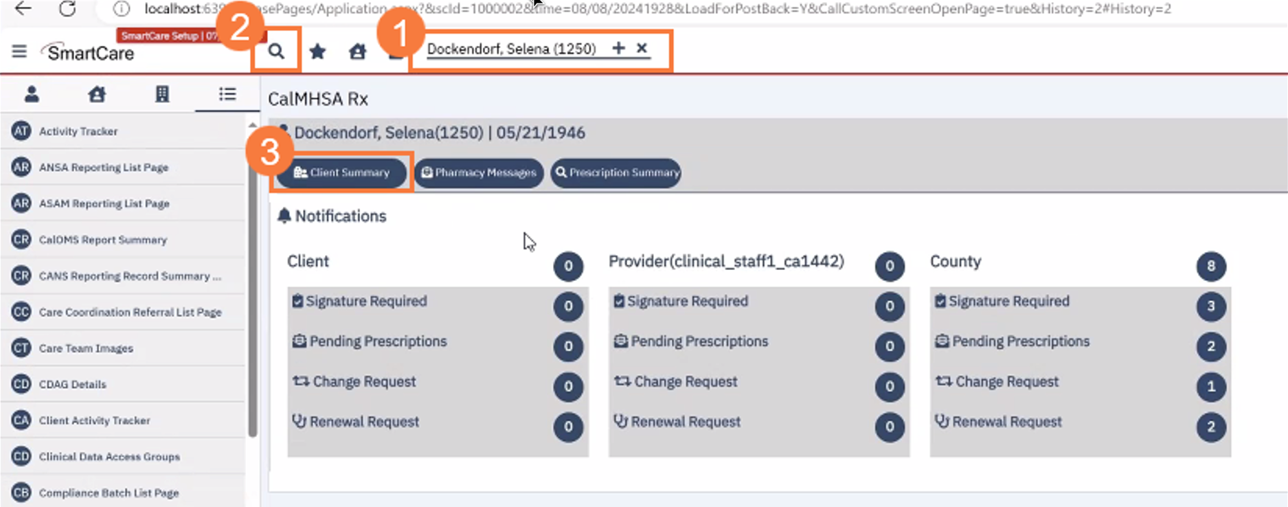 - Select Client Summary.