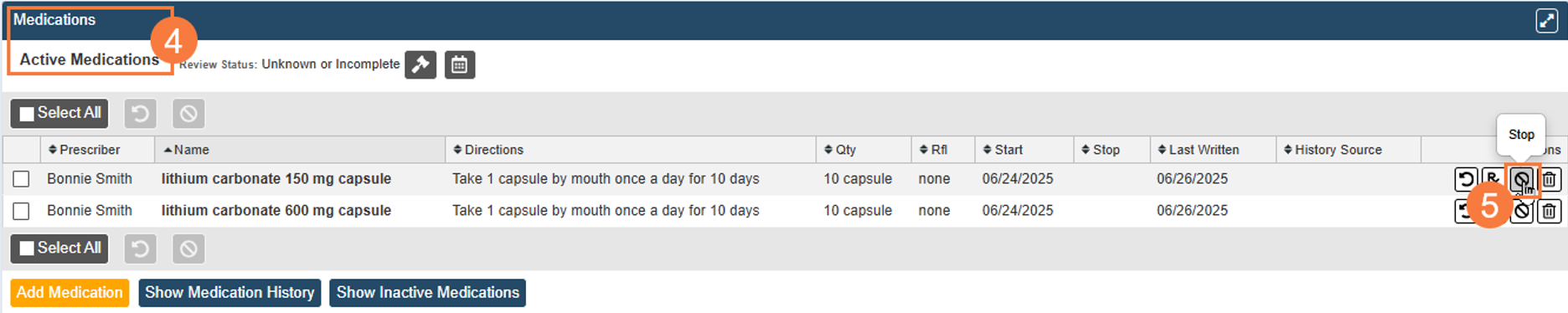 This guide will show you how to stop a prescription. Stopping a prescription removes it from the active medication list and allows you to specify a reason. No information about stopping the prescription gets sent to the pharmacy. Stopping a prescription does not cancel or discontinue the prescription.