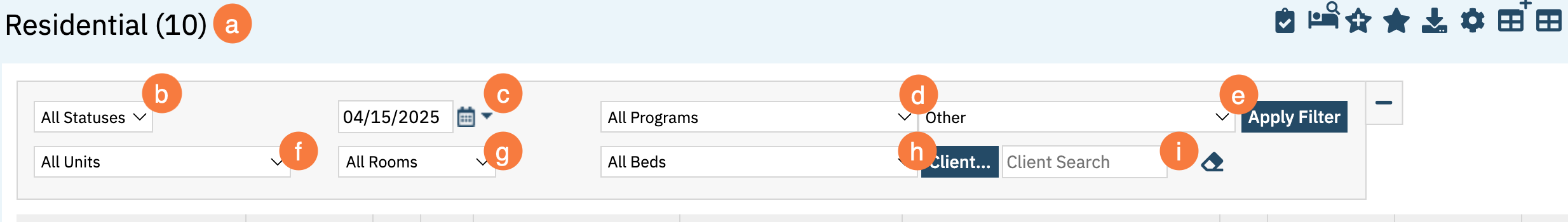 - Title: Residential (#): The number in parentheses is the number of Beds actively on the board