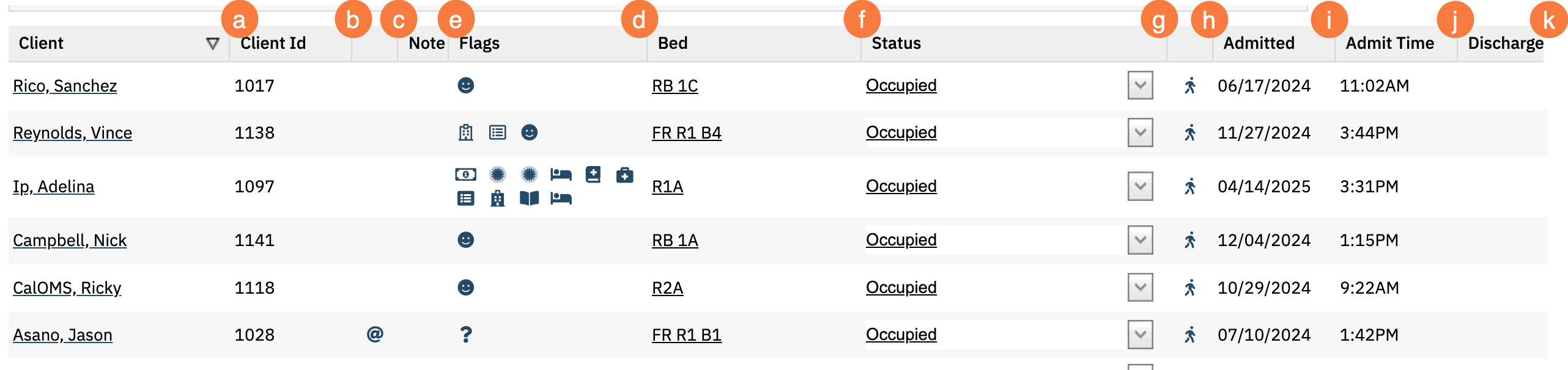 This list page is where you can see all beds for your organization in one place within your permission limits. The information you see displayed is what patients have been currently admitted into a bed. This list page is used to manage beds. This page is used most often by counselors, sys admins, social workers.