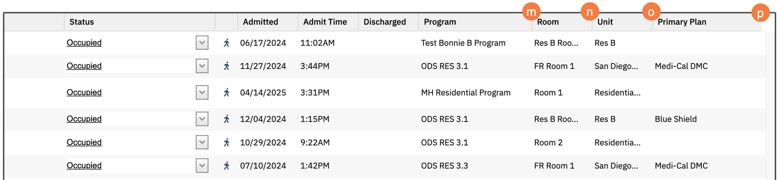- Program: Program the patient is actively in for the listed bed activity. If this is an open bed, this will display the defaulted program for that bed.